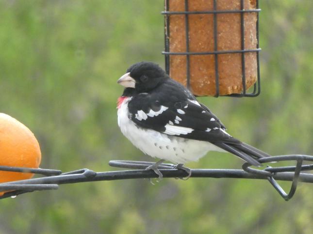 Don't take down those feeders! The best birds are yet to come. In the next few weeks birds like Orioles, Grosbeaks, Catbirds, Hummingbirds, Catbirds are more will be passing through. Our first visitor was the Chipping Sparrow above. These diminutive birds sport a reddish cap. Use April 15 as benchmark to set out a Hummingbird feeder and some orange halves. You never who will stop by in April and May.
