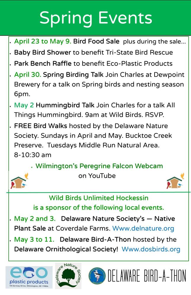 Check out all the cool spring things happening at Wild Birds Unlimited Hockessin!