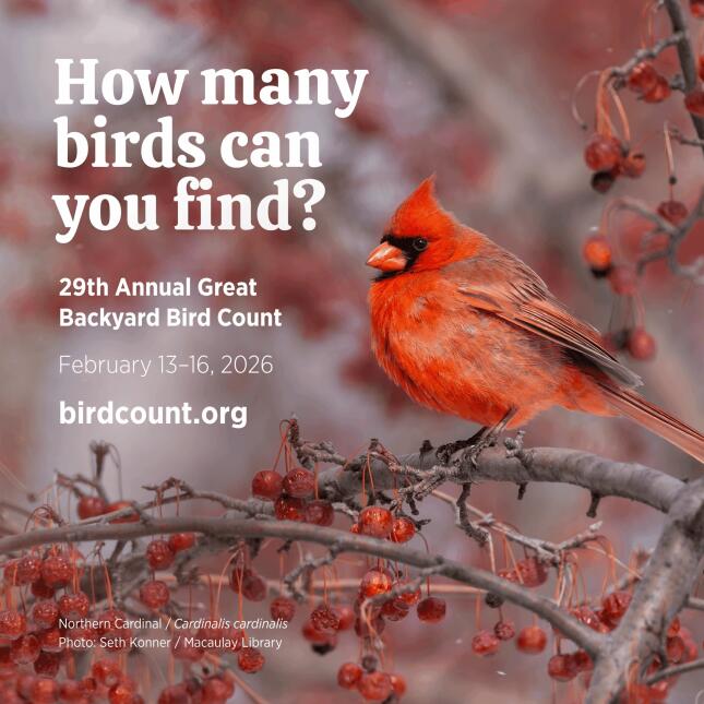 Are you ready for The Great Backyard Bird Count? The GBBC gives you the opportunity to take part in citizen science by counting birds and reporting your observations on eBird. Your information is analyzed by scientists to better understand important trends in bird populations, range expansions, habitat changes and shifts in migration patterns. It's easy. It's fun and it's very important to scientists. Make sure your birds are counted in the Great Backyard Bird Count 2026.